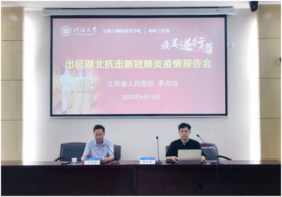 6月18日,英國威廉希爾公司、教師工作部聯合主辦了“最美逆行者——出征湖北抗擊新冠肺炎疫情報告會”,特邀江蘇省人民醫院感染管理處李占結醫師講述在抗擊新冠肺炎疫情中的逆行故事。