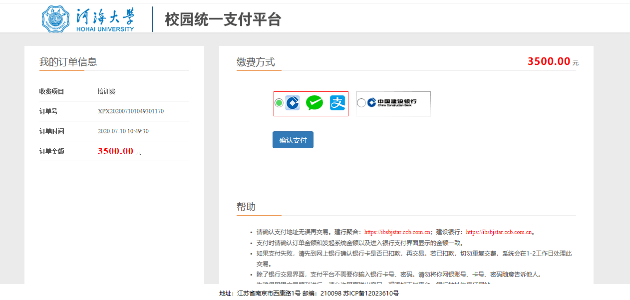 1、報(bào)名成功后直接跳轉(zhuǎn)至繳費(fèi)界面,選擇“在線支付”