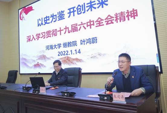 葉鴻蔚書記首先從深刻認識總結(jié)黨的百年奮斗重大成就和歷史經(jīng)驗的重大意義,深刻認識黨的百年奮斗的初心使命和重大成就,深刻認識中國特色社會主義進入新時代的歷史性成就和歷史性變革,深刻認識黨的百年奮斗的歷史意義和歷史經(jīng)驗,深刻認識以史為鑒、開創(chuàng)未來的重要要求,從黨的百年奮斗歷程中汲取智慧和力量六個方面,為黨員們做了《十九屆六中全會精神》的解讀。仲兆宏老師帶領(lǐng)黨員們一起重溫了《古田會議》的主要內(nèi)容和時代價值。