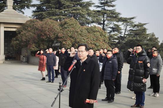 在莊嚴(yán)肅穆的淮海戰(zhàn)役紀(jì)念塔前,葉鴻蔚書(shū)記和銘仕教育站點(diǎn)朱司濤校長(zhǎng)一起代表師生向烈士敬獻(xiàn)了花籃。葉書(shū)記帶領(lǐng)在場(chǎng)師生黨員們瞻仰了革命烈士,重溫了入黨誓詞。全體師生向烈士紀(jì)念塔三鞠躬,表達(dá)對(duì)在淮海戰(zhàn)役中犧牲先烈的哀思和敬意。