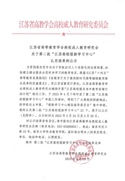 經組織申報,我校成功入選第二批“江蘇高校銀齡學習中心”。