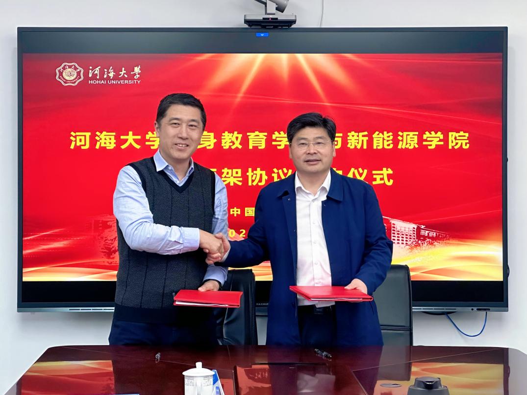 5月9日下午,終身教育學院與新能源學院舉行合作框架協議簽約儀式,終身教育學院黨總支書記、院長朱亞、新能源學院黨委書記楊春偉、終身教育學院副院長于偉、姚文賢出席簽約儀式。
