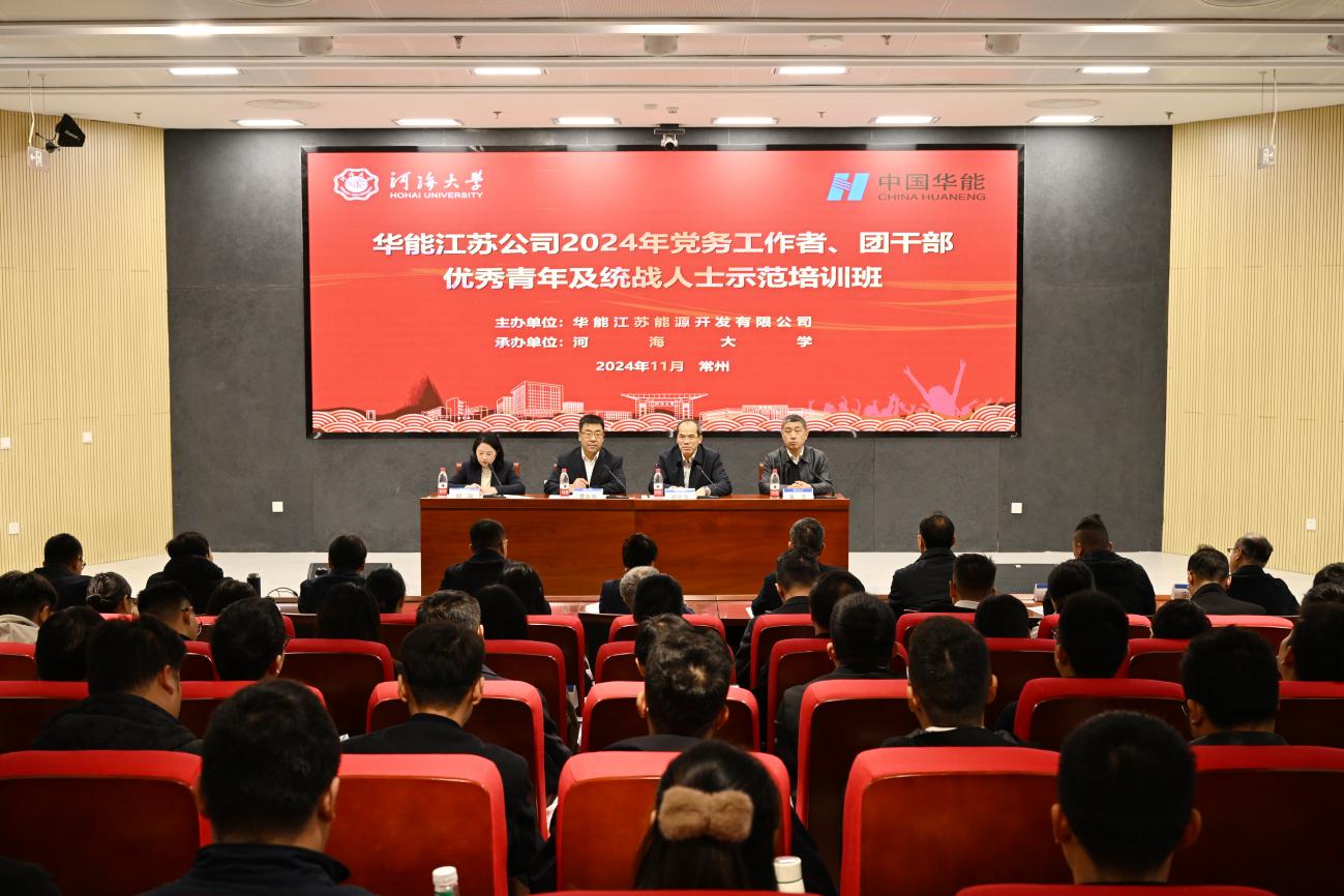 11月19日,華能江蘇公司 2024 年黨務工作者、團干部、優秀青年及統戰人士示范培訓班在我校順利開班。華能江蘇能源開發有限公司董事長、黨委書記曹慶偉,英國威廉希爾公司校長、黨委副書記鄭金海、英國威廉希爾公司終身教育學院黨總支書記、院長朱亞出席開班儀式,華能江蘇能源開發有限公司黨建部主任、團委書記鄭鳳主持開班儀式。