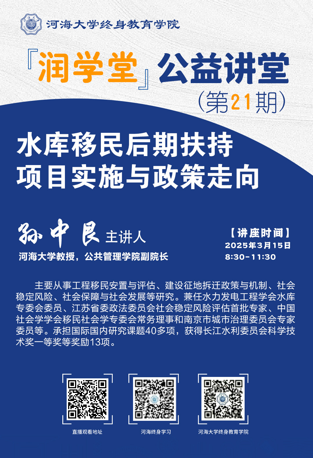 【潤學堂】公益講堂第二十一期:水庫移民后期扶持項目實施與政策走向