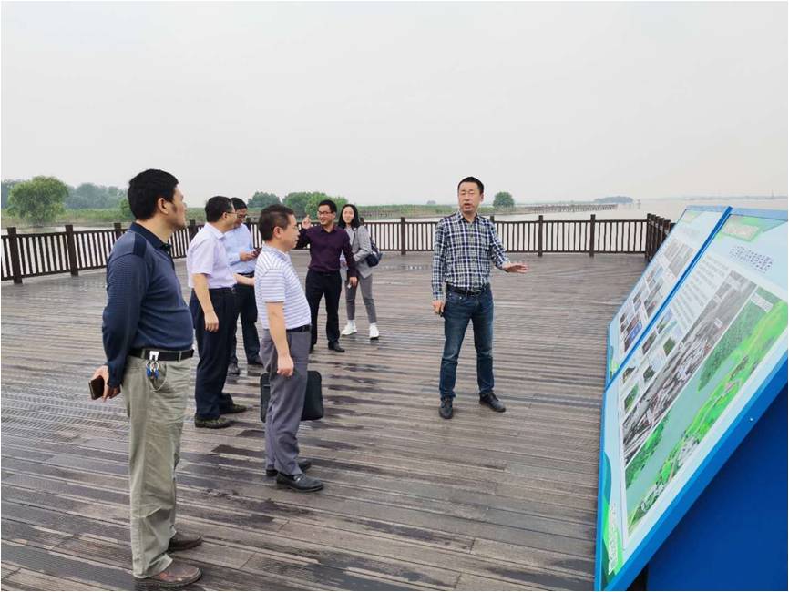 22日上午調研組實地參觀了“薛家洼生態園”。薛家洼地處長江東岸,占地986畝,曾有非法碼頭3家、散亂污企業7家、固廢堆場1處、規模化畜禽養殖場2個,停靠漁民作業船、住家船223條,危舊民居96戶。經過4個月耗資4億元的拆除、搬遷、改造等綜合整治,實施生態修復、復綠增綠、灘涂濕地涵養保護等工程,現長達23公里的長江東岸已經變成樹影婆娑的靜謐江灘。2020年8月19日,習近平總書記實地考察了薛家洼生態園,高度贊賞了當地長江大保護的做法,并指示“在長三角一體化發展中把握機遇、順勢而上”。