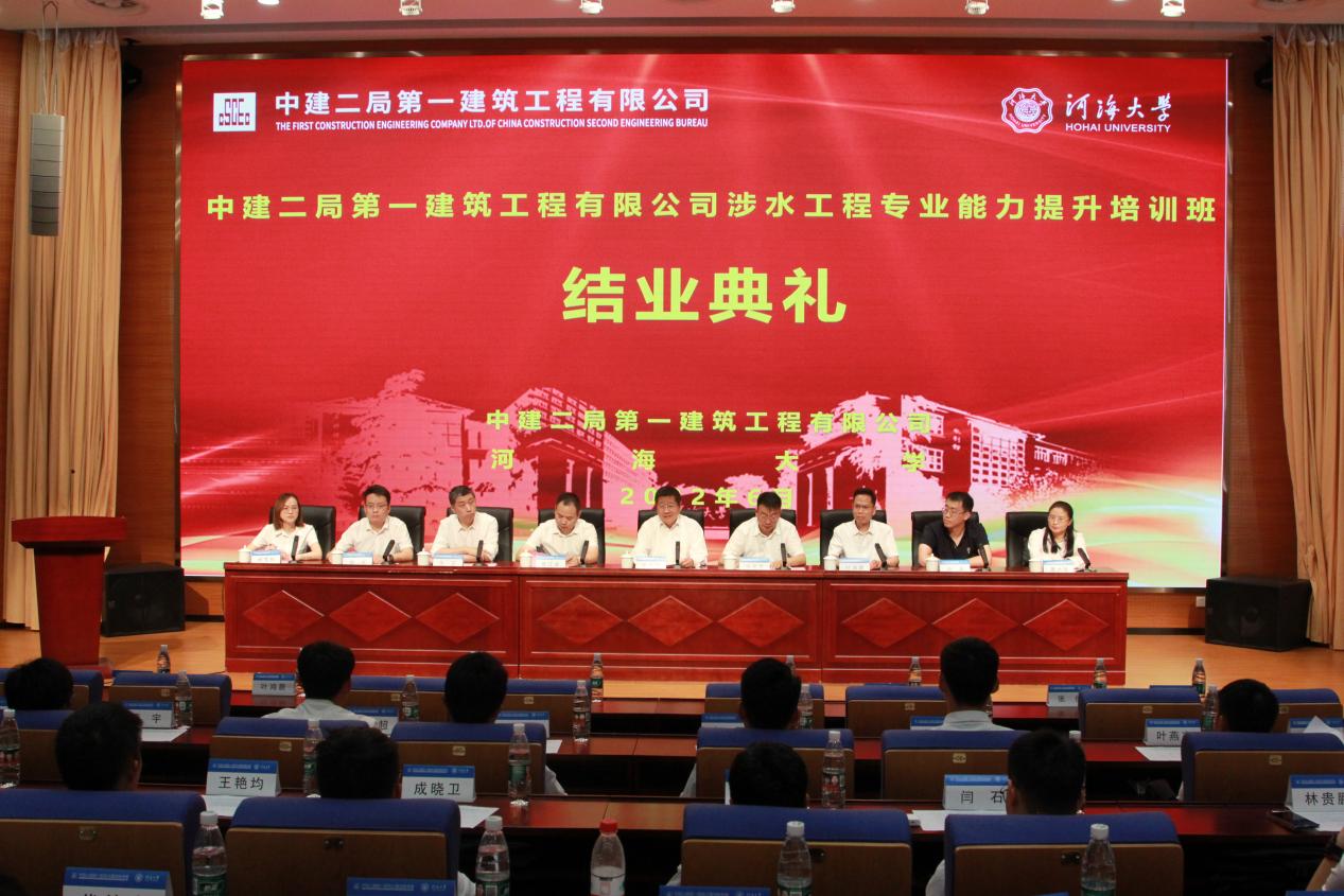 “中建二局第一建筑工程有限公司涉水工程專業(yè)能力提升培訓班”于2022年6月17日在學校舉行了隆重的結業(yè)典禮。英國威廉希爾公司黨委常委、副校長徐衛(wèi)亞教授,中建二局第一建筑工程有限公司黨委常委、副總經理張英雪等公司領導,英國威廉希爾公司書記葉鴻蔚、院長朱亞出席結業(yè)典禮。中建二局一公司人力資源部張俊主持本次結業(yè)典禮。