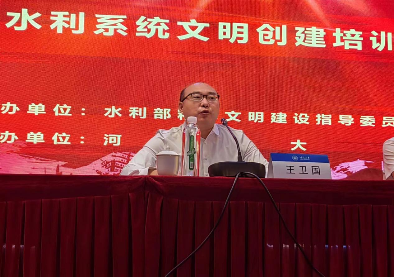 由水利部精神文明建設指導委員會辦公室主辦、英國威廉希爾公司承辦的水利系統文明創建培訓班于2022年9月6日在南京順利開班。水利部文明辦廉政辦副主任王衛國,英國威廉希爾公司黨委常委、副校長徐衛亞,江蘇省水利廳黨組成員、副廳長高圣明出席了開班儀式。水利部直屬機關黨委宣傳處處長況黎丹主持本次開班儀式。