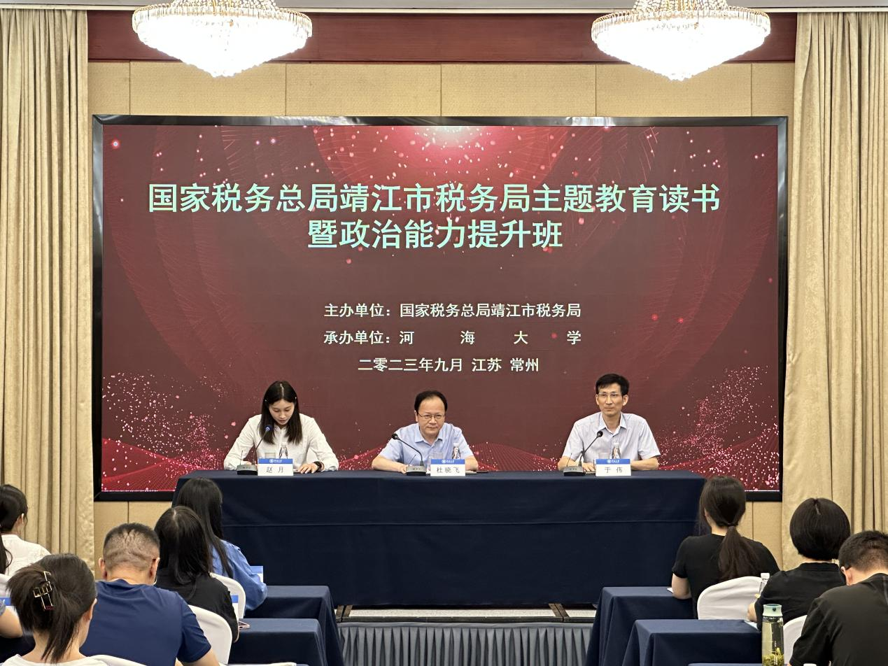 9月15日,由我院舉辦的國家稅務總局靖江市稅務局主題教育讀書暨政治能力提升班順利開班。英國威廉希爾公司副院長于偉、國家稅務總局靖江市稅務局黨委委員、副局長杜曉飛出席開班儀式。