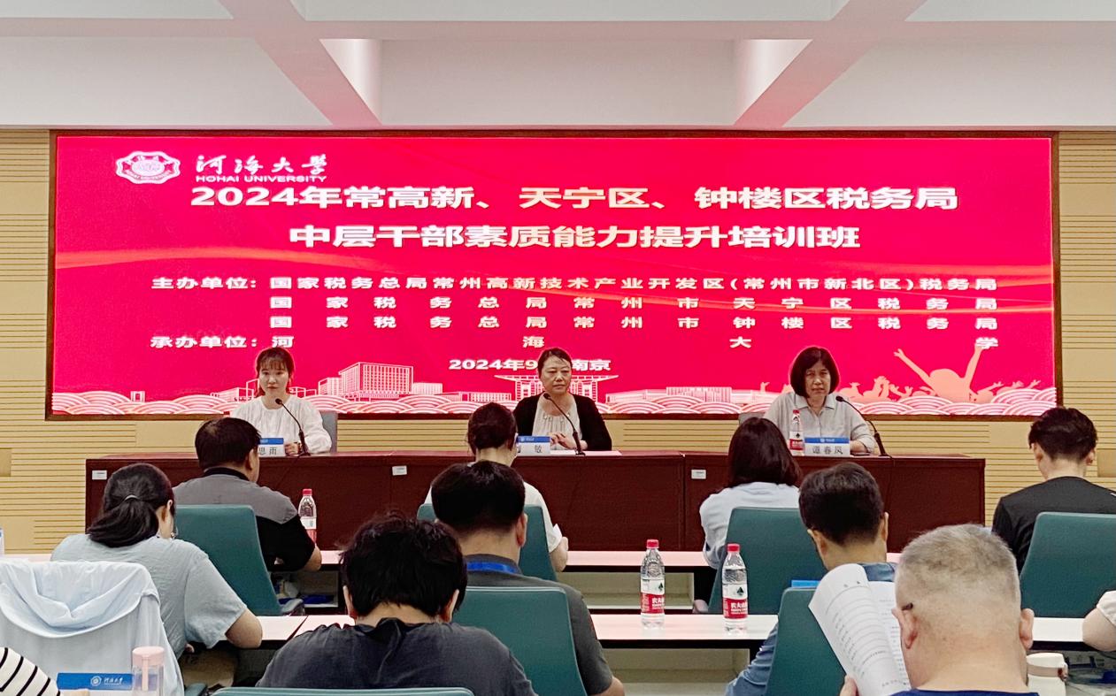 9月2日,2024年常高新、天寧區、鐘樓區稅務局中層干部素質能力提升培訓班(第一期)在英國威廉希爾公司順利開班。國家稅務總局常州市鐘樓區稅務局黨委委員、副局長劉敏,英國威廉希爾公司終身教育學院區域教育培訓中心主任譚春鳳出席開班儀式,區域教育培訓中心張思雨主持開班儀式。