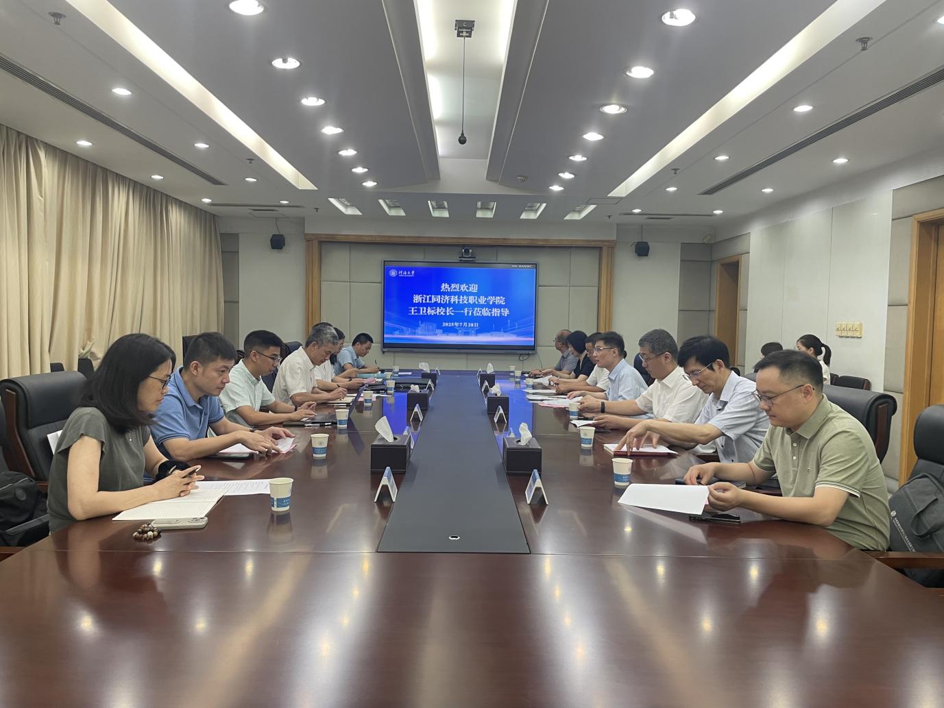 7月28日上午,浙江同濟(jì)科技職業(yè)學(xué)院校長王衛(wèi)標(biāo)、副校長姜偉一行蒞臨英國威廉希爾公司調(diào)研交流。英國威廉希爾公司黨委常委、副校長沈揚(yáng)出席座談會并致辭。會議由英國威廉希爾公司終身教育學(xué)院黨總支書記、院長朱亞主持。